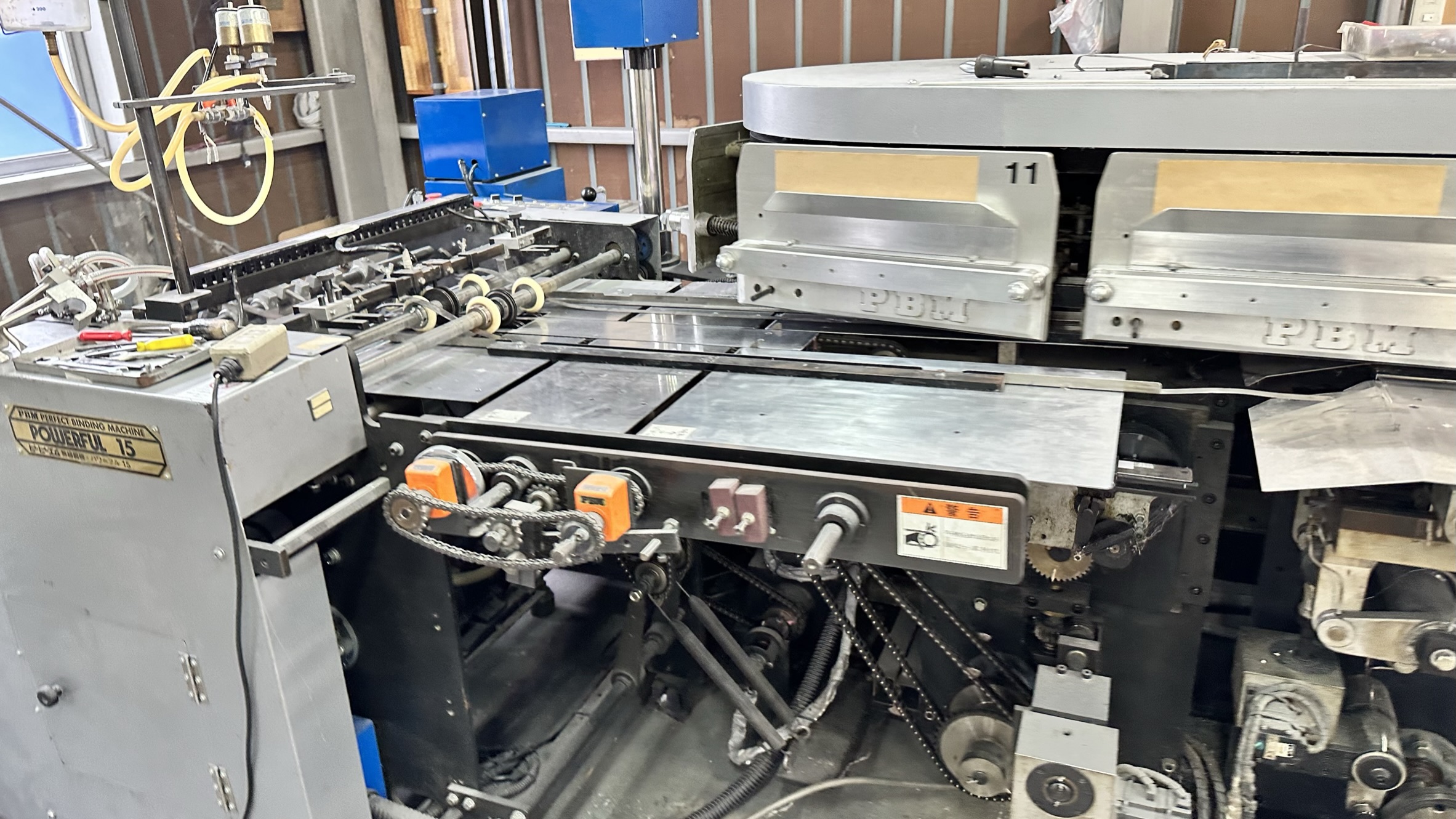 PBM Gathering 12 station PBM Powerful 15 Perfecting Line 15 clamp Gathering and Binder connected with conveyor