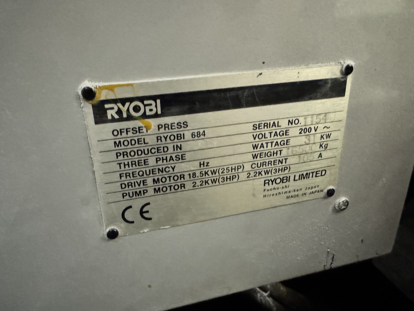 Staight 4 Color, Remote ink key control, cocking, Semi Auto plate changer, RYOBIMATIC ALCOHOL DAMPENING